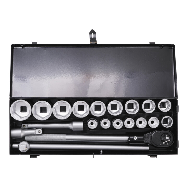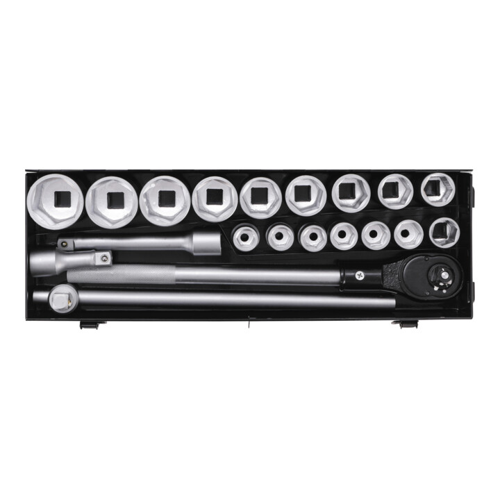HOCHWERTIGES MATERIAL: Die Einsätze des Sets wurden aus hochwertigem Stahl gefertigt, verchromt und können in dem stabilen Knarrenkasten sicher und übersichtlich vor Verlust geschützt werden.
