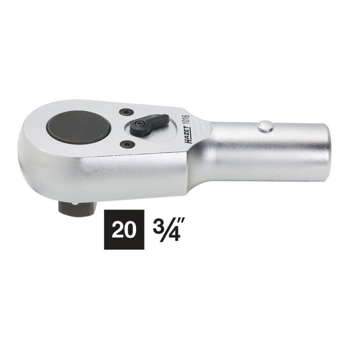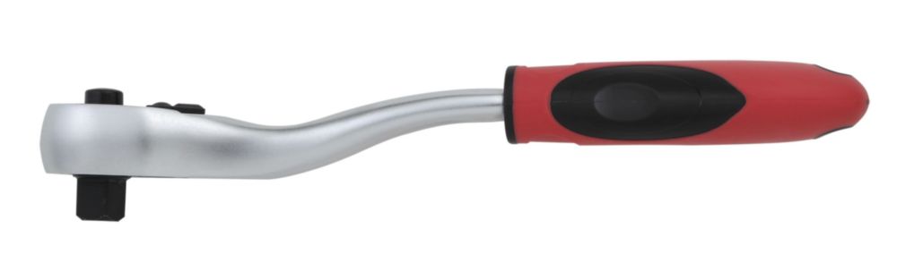 Gekröpfte Ausführung für tiefliegende Schraubfälle, Rechts-/Linkslauf durch Hebel umschaltbar, Grobverzahnt mit 36 Zähnen, Rückschwenkwinkel von 10°