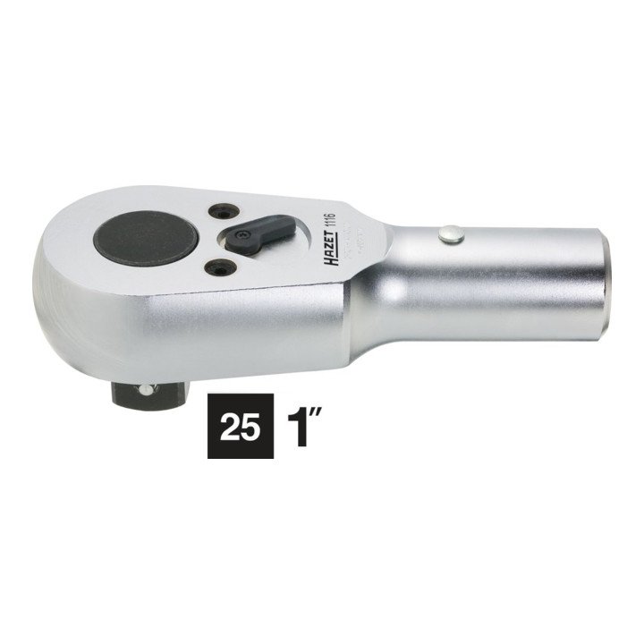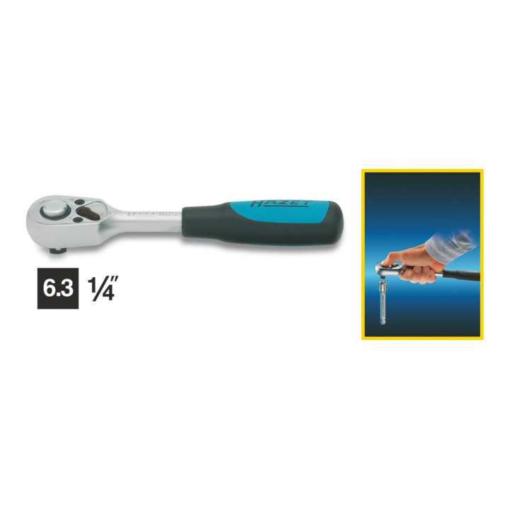 Rechts-/Linkslauf durch Hebel umschaltbar, Feinverzahnt mit 72 Zähnen, Kleiner Rückschwenkwinkel von nur 5°