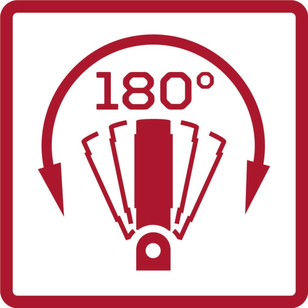 Knarrenkopf 180° schwenkbar, Arretierbar in 5 Positionen, Rechts-/Linkslauf durch Hebel umschaltbar, Feinverzahnt mit 72 Zähnen, Kleiner Rückschwenkwinkel von nur 5°