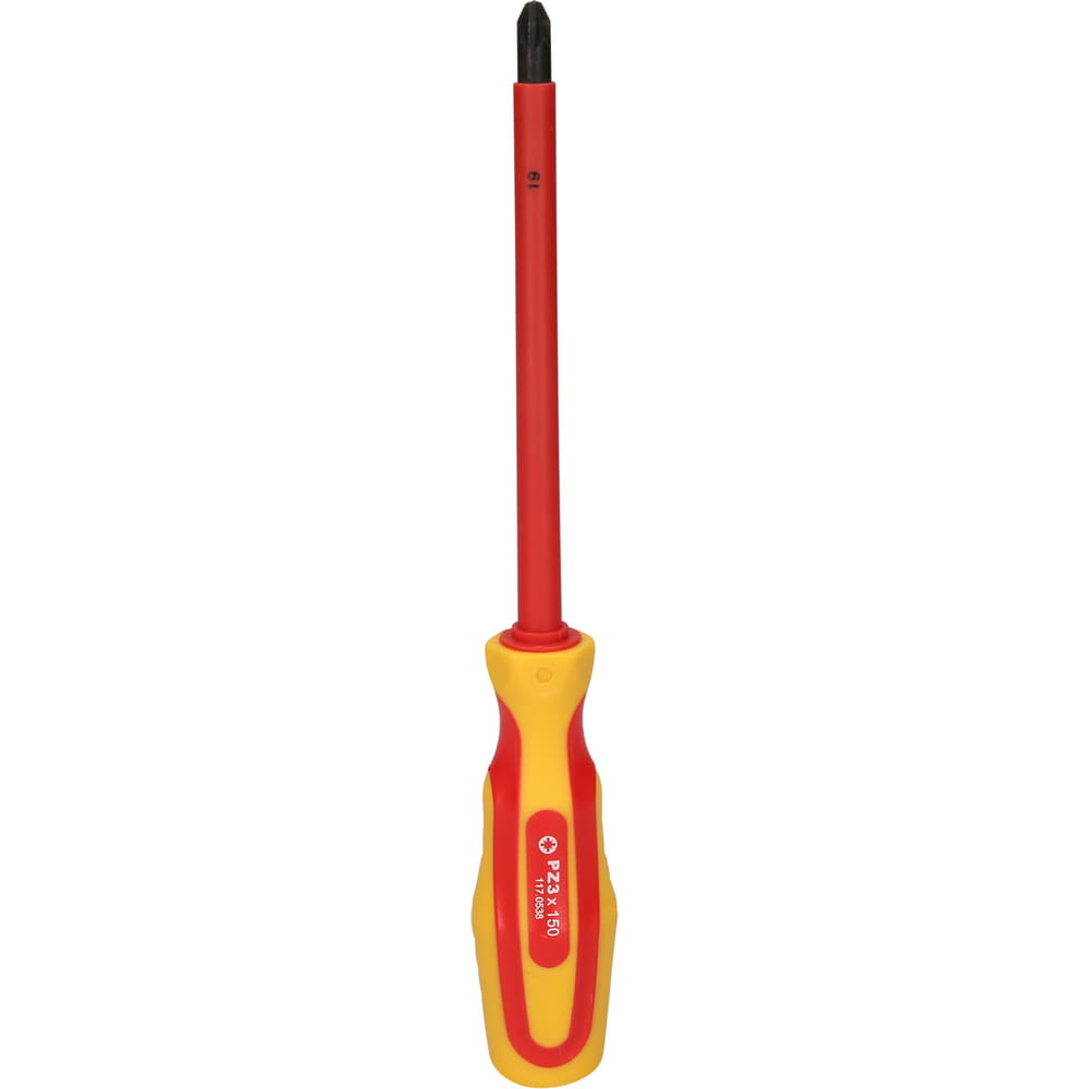 PASSENDE AUSRÜSTUNG: Der gespritzte Griff des VDE-Schraubendrehers für Kreuzschlitz-Schrauben mit der Abtriebsgröße 1 bildet eine feste Einheit mit der Klinge, was das Werkzeug sehr robust macht.