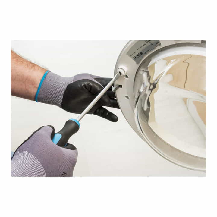EINFACHE HANDHABUNG: Der Schraubendreher verfügt über den ergonomischen 2-Komponenten-Griff. Mit dem komfortablen Griff geht Ihnen die Arbeit leicht von der Hand und schont dabei Sehnen und Gelenke.