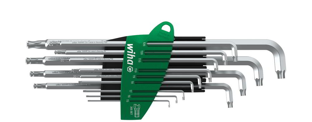 Extra: Gängige Schlüsselgrößen werden im Halter übersichtlich aufbewahrt.Einfache und schnelle Bedienung durch festen Anschlagspunkt für Stiftschlüssel.TORX®-Kugelkopf ermöglicht das Verschrauben unter einem Winkel von bis zu 25°.Mit verlängertem TORX®-Profil hinter dem Kugelkopf.