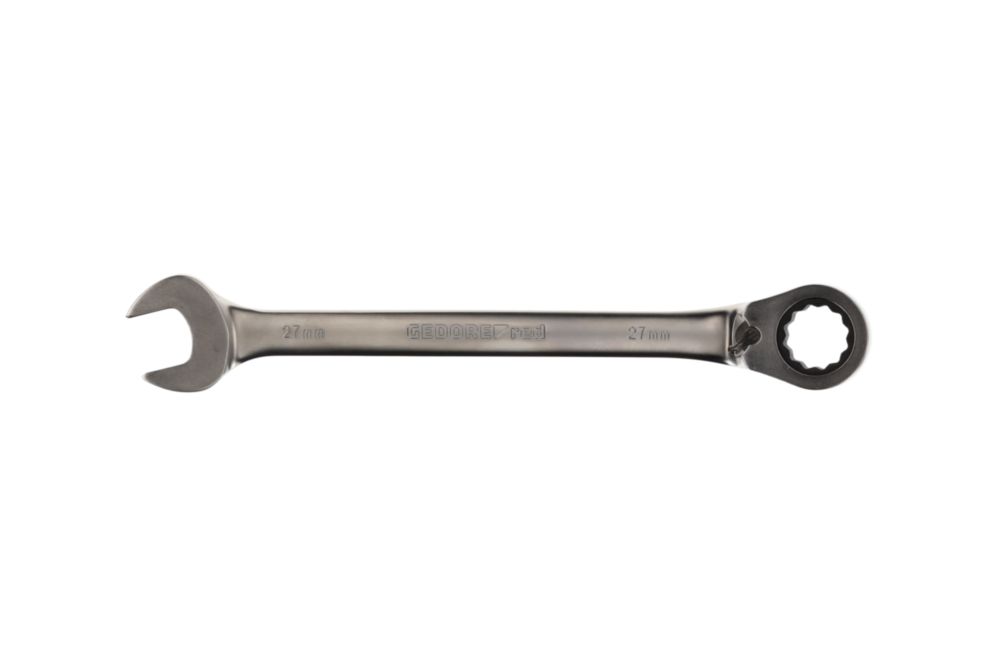 LIEFERUMFANG: 1 x GEDORE red Ringratschenmaulschlüssel, Schlüsselweite: 27 mm, Länge: 359 mm, Gewicht: 650 g, Artikelnummer: R07200270