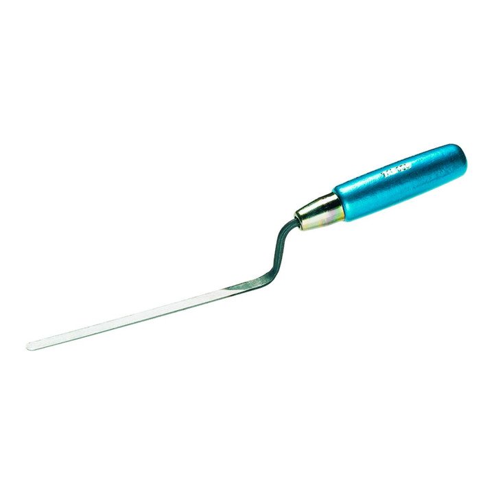 Vergütetes Kohlenstoffstahlblatt. Komfortabler Weichgriff für längere Anwendungen. Gebogenes Kellenblatt zum Erstellen von Hohlfugen. Mit Fingerschutz, Daumenhalter und reichlich Platz für die Fingerknöchel. Zum Verfugen nach dem Mauern.