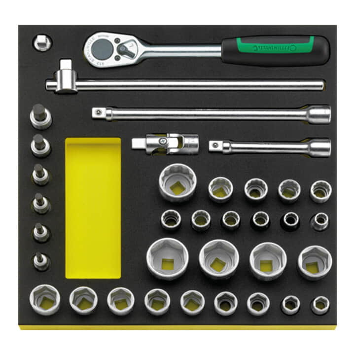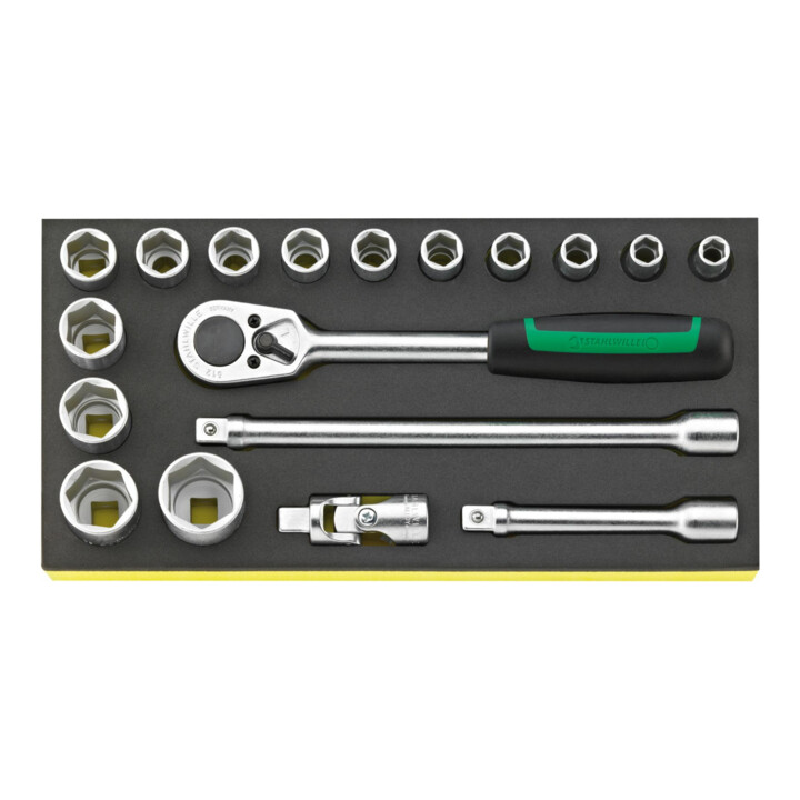 Ratschen,Steckschlüssel-Einsätze und Bedienelemente für kraftvollen Einsatz. Aus Chrom-Vanadium-Stahl 31 CvR 3