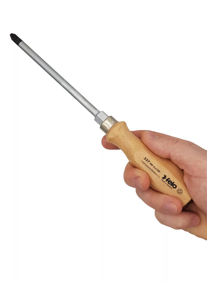 PASSENDE AUSRÜSTUNG: Der Schraubendreher mit einer Klingenlänge von 150 mm und Antriebsgröße 2 eignet sich zum Anziehen und Lösen von Kreuzschlitzschrauben. Ein Aufhängeloch dient der ordentlichen Aufbewahrung.
