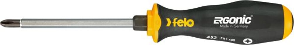 PASSENDE AUSRÜSTUNG: Der Schraubendreher mit einer Klingenlänge von 80 mm und Antriebsgröße 1 eignet sich zum Anziehen und Lösen von Kreuzschlitzschrauben. Ein Aufhängeloch dient der ordentlichen Aufbewahrung.