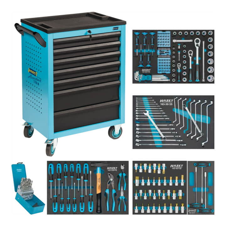ÜBERSICHTLICHE AUFBEWAHRUNG: Der Werkzeug-Satz wird in einer handlichen Metallklappkassette geliefert, in der die Werkzeuge übersichtlich aufbewahrt werden können.