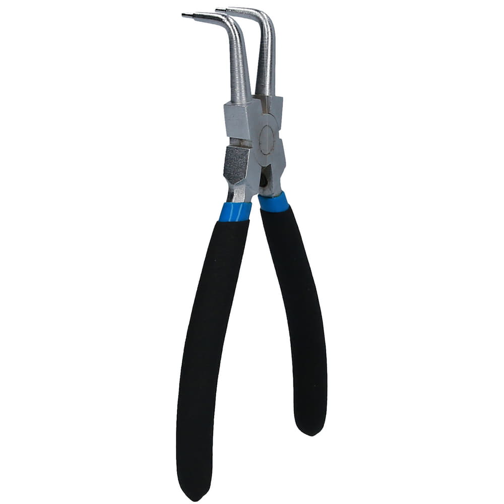 45° GEWINKELT: Die Montagezange für Innensicherungsringe verfügt über gewinkelte Backen. Die Zange ist daher optimal für den Ein- oder Ausbau einer Welle (Ø von 8-13 mm) bei wenig Platz geeignet.