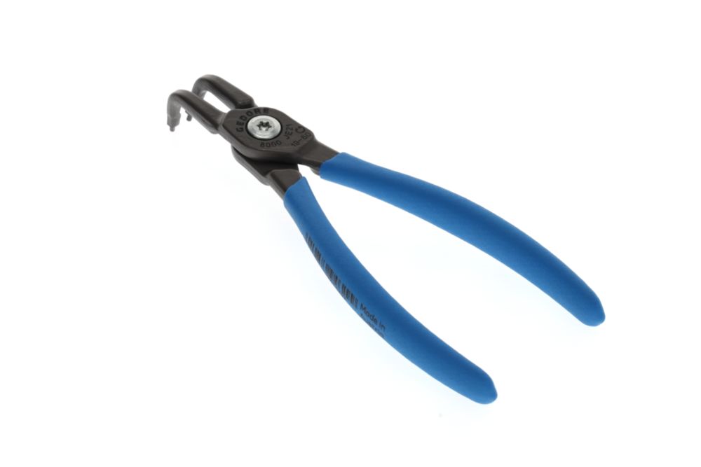 LIEFERUMFANG: 1 x GEDORE Montagezange für Innensicherungsringe, gewinkelt, 8-13 mm, Länge: 119 mm, Gewicht: 80 g, Artikelnummer: 8000 J 01