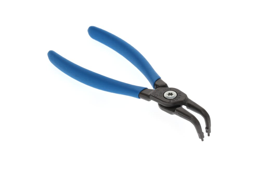 45° GEWINKELT: Die Montagezange für Innensicherungsringe verfügt über gewinkelte Backen. Die Zange ist daher optimal für den Ein- oder Ausbau einer Welle (Ø von 40-100 mm) bei wenig Platz geeignet.