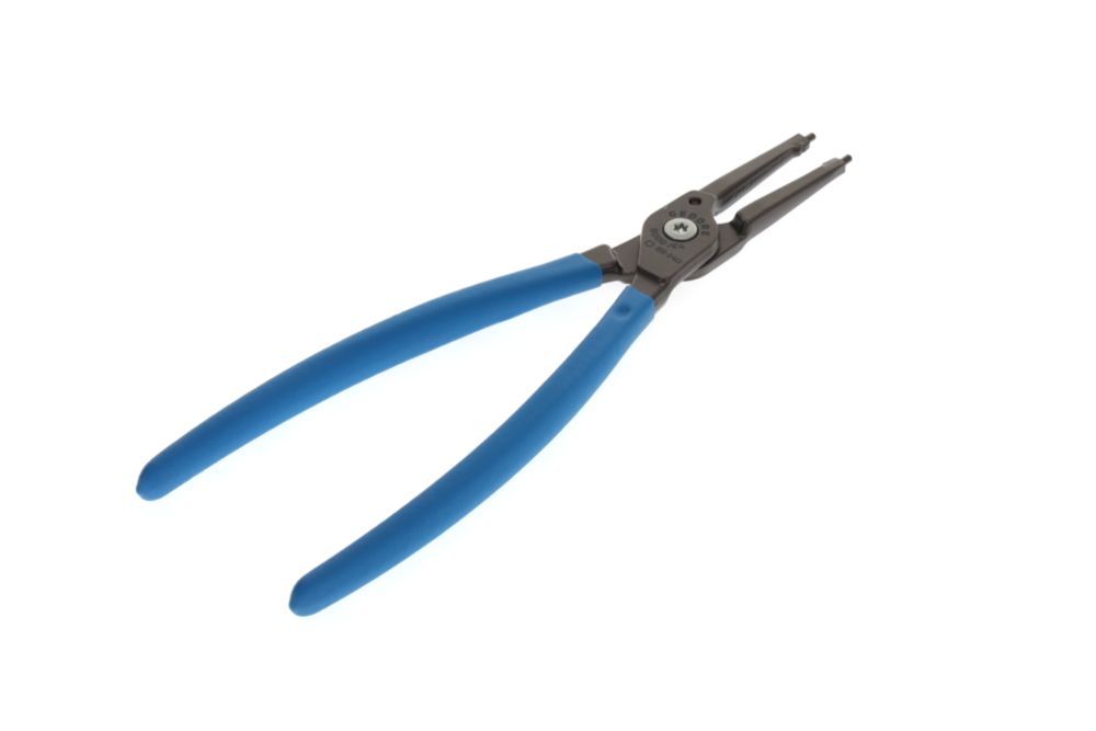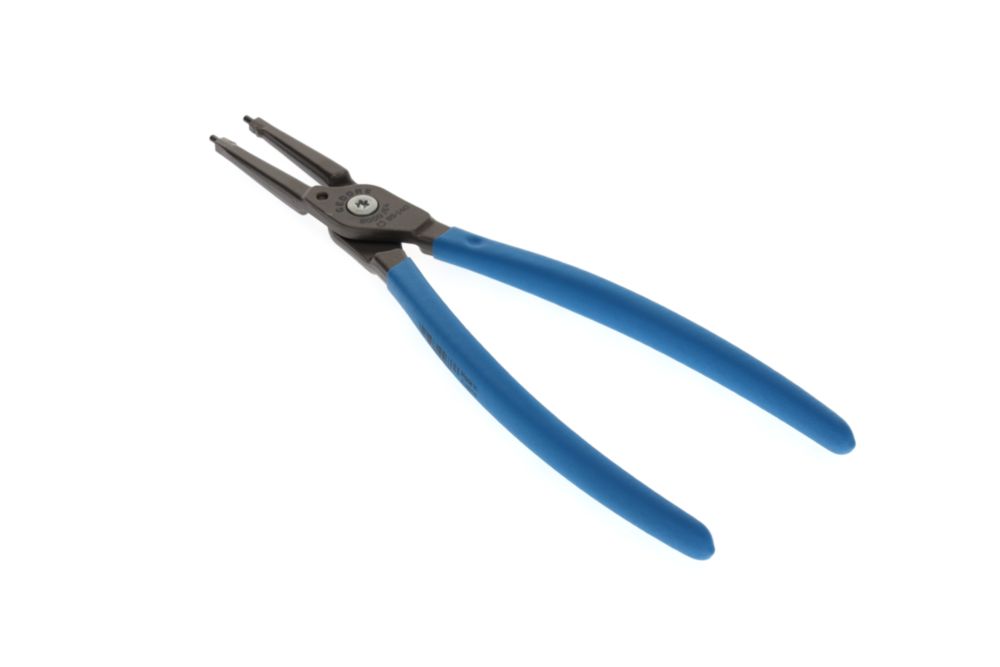 GERADE BACKEN: Die Montagezange für Innensicherungsringe verfügt über gerade Backen. Die Zange ist daher optimal für den Ein- oder Ausbau einer Welle (Ø von 85-140 mm) geeignet.