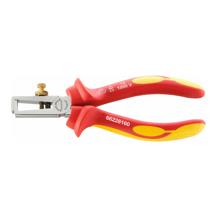 Die Abisolierzange wird 100% in Deutschland hergestellt und besteht aus Biopolymer, das robust und ergonomisch geformt ist. Der hochwertige Messerstahl aus Solingen garantiert langlebige Klingen, und die Abisolierzange ist TÜV/GS geprüft hinsichtlich Arbeitssicherheit.