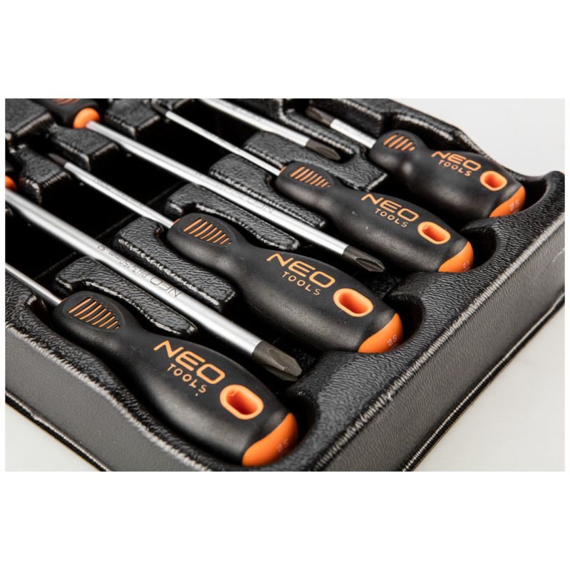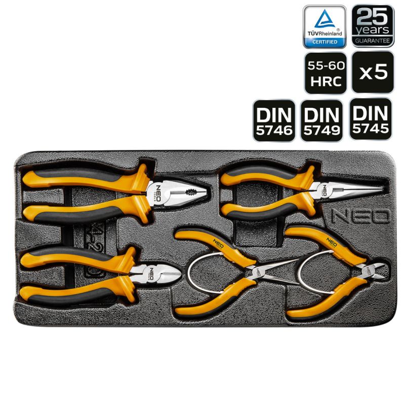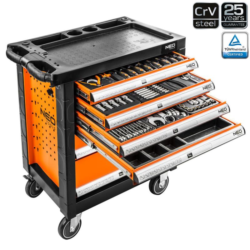 inchesNEO Werkstattwagen bestückt mit 6 Schubladen 770 x 460 x 870 mm, 25-jährigen Herstellergarantie bestätigt Der Schrank hat 6 praktische Schubladen für Werkzeuge , die durch eine Zentralverriegelung gesichert sind. Alle Schubladen sind vollständig zu öffnen, haben Kugelführungen und sorgen für ein langlebiges, flüssiges und zuverlässiges Arbeiten. Die Schubladen werden durch eine rattenförmige Blockade gesichert, die für die Sicherheit der Umwelt beim Transport sorgt. Die Arbeitsraumfläche, die mit einem widerstandsfähigen Verbundwerkstoff bedeckt ist, sowie die Nische für verschiedene Anwendungen und der spezielle Platz für Schraubstöcke erhöhen die Benutzerfreundlichkeit des Produkts. Anti-Riss-Ecken sorgen für die Sicherheit der Umwelt. 5 Zoll, leise, verdrehte Räder erleichtern das Manövrieren, zusätzlich sind sie mit einer Bremse ausgestattet. Tragfähigkeit 200 kg. Der Schrank ist mit einem bequemen Gummihalter ausgestattet, der die Führung erleichtert. Die Zuverlässigkeit des Produkts wurde mit einer 25-jährigen Herstellergarantie bestätigt. Die Marke NEO erfüllt die Erwartungen der Fachleute. Hinweis: Der Versand ins Ausland erfolgt durch eine Spedition. Dadurch ergeben sich gesonderte Versandkosten. Dafür wenden Sie sich bitte an unseren Kundenservice: E-Mail: info@arbeitsbedarf24.de Telefon: +49 30 405 313 10 DETAILS Werkstattwagen, 6 Schubladen, (LxBxH) 770 x 460 x 870 mm, Tragfähigkeit 200 kg, Stahlkörper, Zentralverriegelung, Verbundarbeitsfläche, Kugelführungen, Anti-Riss-Ecken, Schubladenblockade, 5inchesinches Rad aus PVC, seitlicher Gummihalter, 2 Schlüssel Technische Daten Tragfähigkeit 200 kg 6 Schubladen Kugelführungen TÜV-Zertifikat 25 Jahre Herstellergarantie Garantieinformation Inhalt 40 tlg. Schraubendreher-Bit-Set aus hochwertigem Chrom-Vanadium-Stahl. Das Set enthält eine breite Palette von Mitnehmerbits: Sechskant, Torx, Spline in 2 Längen 30 und 75 mm. Das Set enthält auch zwei Adapter 1/2inchesinches und 3/8inchesinches.HEX-Länge 30 mm: H4, H5, H6, H7, H8, H10, H12, HEX-Länge 75 mm: H4, H5, H6, H7, H8, H10, H12, Nutlänge 30 mm: M5, M6, M8, M10, M12, Keilwellenlänge 75 mm: M5, M6, M8, M10, M12, Torxlänge 30 mm: T20, T25, T30, T40, T45, T50, T55, T55, Torxlänge 75 mm: T20, T25, T30, T40, T45, T50, T55, Adapter: 1/2inchesinches-10 mm, 3/8inchesinches-10 mm, profiliert 5 tlg. Zangensatz nach DIN-Normen. Die Backen sind aus hochwertigem Stahl gefertigt und induktionsgehärtet (55-60 HRC), um ein effizientes Schneiden und Formen von starken Drähten zu ermöglichen. Der ergonomische Griff aus zwei Materialien verbessert den Bedienkomfort. Werkzeugqualität bestätigt mit TÜV-Zertifikat, Rundumzange 160mm, 55-60 HRC, DIN 5746, Diagonalenzange 160mm, 55-60 HRC, DIN 5745, Langbeckzange 160mm, 55-60 HRC, DIN 5745, Präzisions-Diagonalenzange 110mm, Präzisions-Langbeckzange 130mm 4 tlg. Sicherungsringzangensatz 19-60 mm. Zangenausführungen sind gerade außen und innen, außen und innen gebogen, Länge 180 mm. Hochwertiger Chrom-Vanadium-Stahl garantiert Langlebigkeit für jahrelangen Zangeneinsatz. Griffe mit Anti-Rutsch-Beschichtung liegen gut in der Hand und erleichtern den festen Halt, Spitzendurchmesser 1,8 mm 27 tlg. 1/2inchesinches Steckschlüssel-Satz aus hochwertigem Chrom-Vanadium-Stahl. Das Set enthält eine Ratsche mit robustem Ratschenmechanismus (72 Zähne). Das Set enthält eine große Auswahl an Sechskant-Steckschlüsseln mit Verlängerungen, Gelenk, Adapter 1/2 inchesinchesM x 3/8 inchesinchesF und Zündkerzenstecker ausgestattet, Ratsche 255 mm, Drehrichtungswahlschalter, 2 Verlängerungen 125, 250 mm, Kreuzgelenk 65 mm, Adapter 1/2 inchesinchesM x 3/8 inchesinchesF, 2 Zündkerzenstecker 16 und 21 mm, 20 Sechskant-Steckschlüssel. Größen: 8, 10, 11, 12, 13, 14, 15, 16, 17, 18, 19, 20, 21, 22, 24, 27, 30, 32, 34, 36 mm 7 tlg. PH Kreuzschlitzschraubendreher aus besonders stabilem S2-Stahl gefertigt. Die Schraubendreherklingen werden wärmebehandelt, um eine geeignete Biegefestigkeit und Härte 56 HRC zu erhalten. Schraubendreher verfügen über magnetische , verstärkte Spitzen. Dreiläufige Griffform mit profilierter Daumenauflage reduziert die Handkraft bei der Arbeit und erleichtert das Erreichen des richtigen Drehmoments. Der Griff aus zwei Materialien verhindert das Verrutschen in der Hand und ist zudem beständig gegen Chemikalien, Öle und Fette. Werkzeugqualität bestätigt mit TÜV-Zertifikat Größen: PH0x75mm, PH1x75mm, PH1x100mm, PH2x38mm, PH2x100mm, PH2x150mm, PH3x150mm 7 tlg. Schlitzschraubendreher aus besonders stabilem S2-Stahl gefertigt. Die Schraubendreherklingen werden wärmebehandelt, um eine geeignete Biegefestigkeit und Härte 56 HRC zu erhalten. Schraubendreher verfügen über magnetische , verstärkte Spitzen. Dreiläufige Griffform mit profilierter Daumenauflage reduziert die Handkraft bei der Arbeit und erleichtert das Erreichen des richtigen Drehmoments. Der Griff aus zwei Materialien verhindert das Verrutschen in der Hand und ist zudem beständig gegen Chemikalien, Öle und Fette. Werkzeugqualität bestätigt mit TÜV-Zertifikat. Größen: 3,0x75mm, 5,5x100mm, 5,5x200mm, 6,5x38mm, 6,5x125mm, 6,5x150mm, 8x150mm 14 tlg. Steckschlüsseleinsätze lang 1/2inchesinches aus langlebigem Chrom-Vanadium-Stahl. Die gerändelte Oberfläche verbessert die Griffigkeit. Größen: 8, 9, 10, 11, 12, 13, 14, 15, 16, 17, 18, 19, 20, 21 mm 14 tlg. Schraubenschlüssel in gängigen hergestellt nach DIN 3113. Hochwertiger Chrom-Vanadium-Stahl garantiert Langlebigkeit für jahrelangen Einsatz von Schlüsseln. Größen: 6, 7, 8, 9, 10, 11, 12, 13, 14, 15, 16, 17, 18, 19 mm 8 tlg. Schraubenschlüssel in gängigen, hergestellt nach DIN 3113. Hochwertiger Chrom-Vanadium-Stahl garantiert Langlebigkeit für jahrelangen Einsatz von Schlüsseln. Größen: 20, 21, 22, 24, 27, 29, 30, 32 mm Schrankablage 550x356 mm für Schrauben und andere Kleinteile. Hergestellt aus hartem und langlebigem Polypropylen. Wer