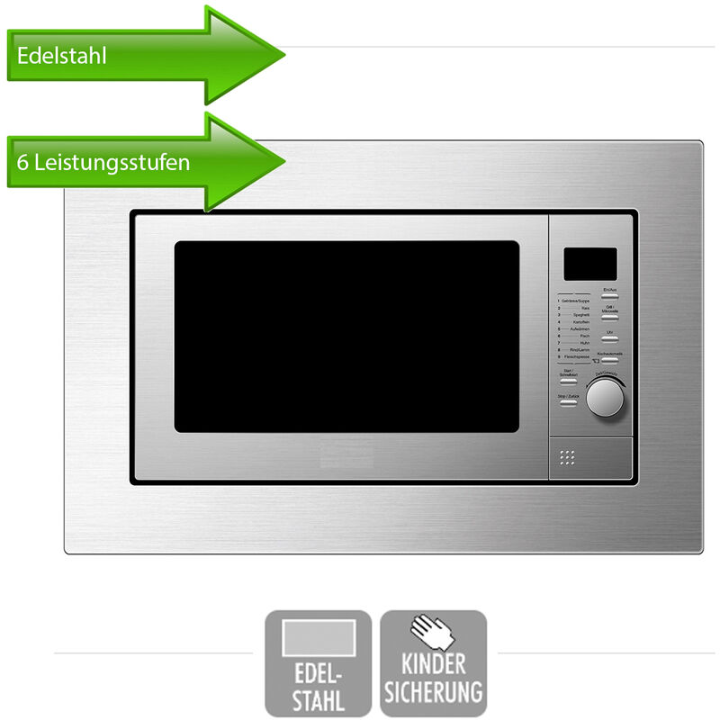 Diese Mikrowelle mit einer Kapazität von 23 Litern und Grillfunktion wird mit 230 V / 50 Hz betrieben. Sie hat eine maximale Leistung von 800 W und einen Stromverbrauch von 1200 W im Mikrowellenbetrieb. Ausgestattet mit einer LED-Anzeige, kombiniert sie Touch- und Skalensteuerung und wird über einen Griff geöffnet. Die Innenarchitektur besteht aus keramischer Emaille, was die Reinigung erleichtert. Die Mikrowelle verfügt über sechs Leistungsstufen und bietet verschiedene Kochmodi, darunter eine Grillfunktion. Sie hat eine maximale Kochzeit von 99 Minuten, eine 30-Sekunden-Schnellstartfunktion und eine Kindersicherung.Mit den Maßen 490 x 275 x 392 mm und einem Gewicht von 13 kg netto ist sie kompakt und vielseitig einsetzbar. Dieses Modell ist ideal für alle, die eine Kombination aus Mikrowelle und Grill in einem Küchengerät suchen.