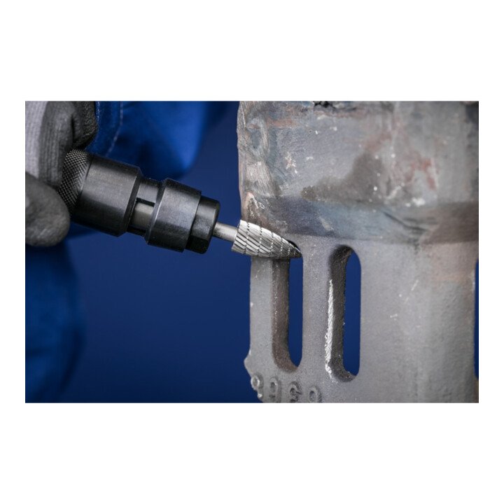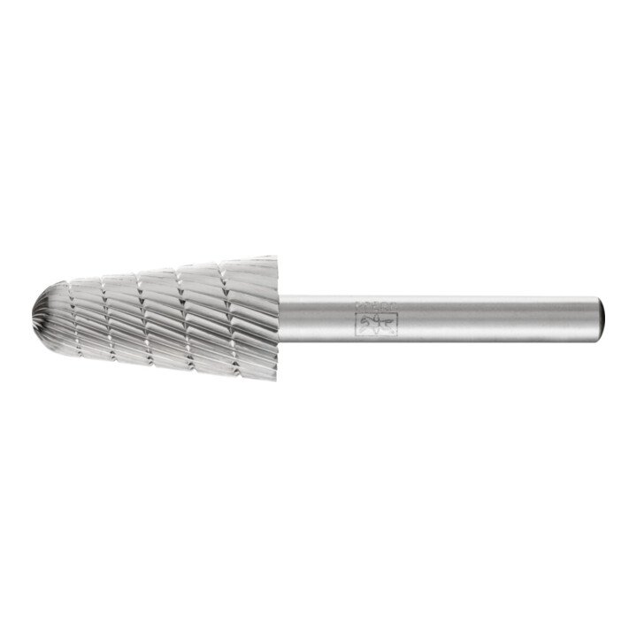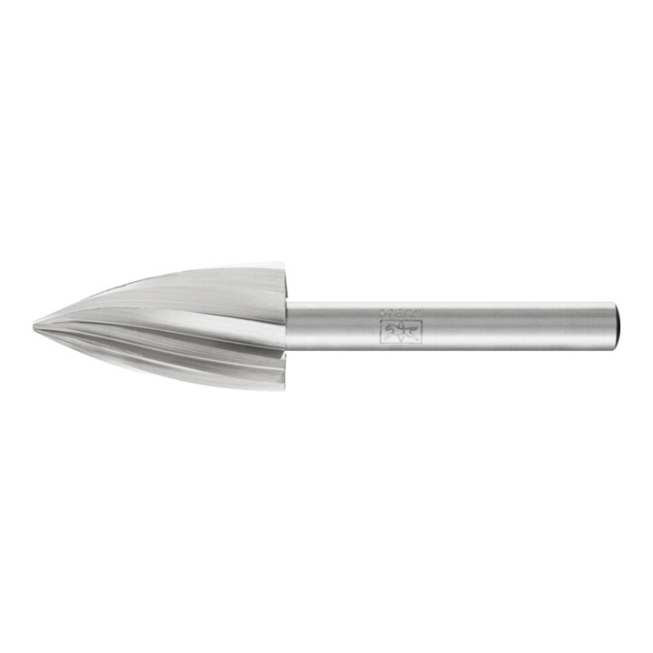 Frässtifte aus Hochleistungshartmetall mit Kreuzverzahnung. Die Kreuzverzahnung ergibt eine höhere Spanleistung gegenüber der Einfachverzahnung. Dies wirkt sich insbesondere bei schwerzerspanbaren Werkstoffen positiv aus. Einsatzgebiete: für hochlegierte, rostbeständige, säurebeständige und hitzebeständige Stähle, Guß und Kunststoffe. Zum Entgraten, Kantenbrechen, Verputzen, Schweißnahtbearbeitung und Flächenbearbeitung.