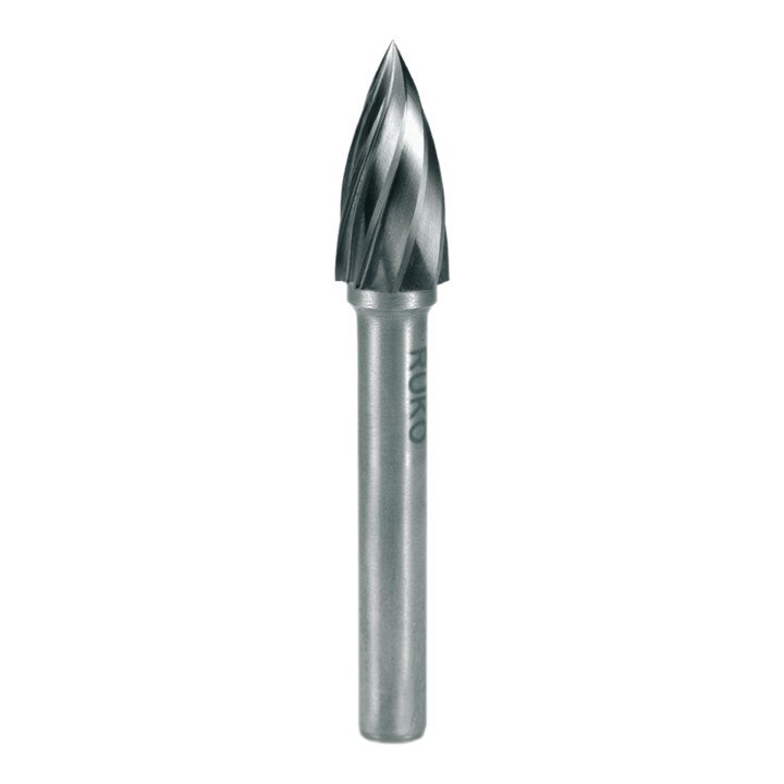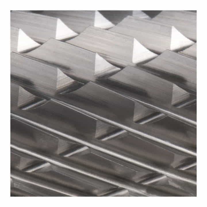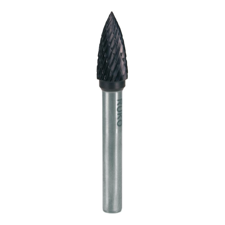 Frässtifte aus Hochleistungshartmetall mit Kreuzverzahnung. Die Kreuzverzahnung ergibt eine höhere Spanleistung gegenüber der Einfachverzahnung. Dies wirkt sich insbesondere bei schwerzerspanbaren Werkstoffen positiv aus. Einsatzgebiete: für hochlegierte, rostbeständige, säurebeständige und hitzebeständige Stähle, Guß und Kunststoffe. Zum Entgraten, Kantenbrechen, Verputzen, Schweißnahtbearbeitung und Flächenbearbeitung.