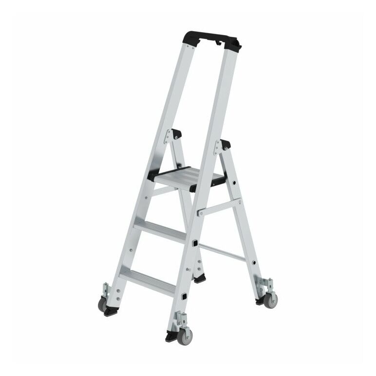 MUNK Günzburger Steigtechnik Aluminium-Stehleiter einseitig begehbar Rollen 1 x 14 Stufen