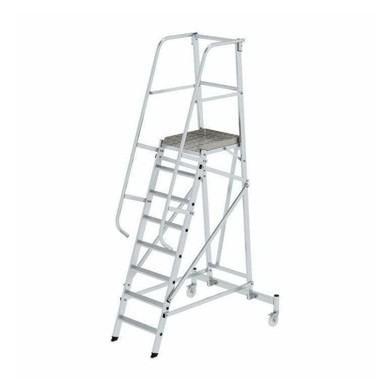 - Mit beidseitigem Handlauf, 3-seitigem Geländer sowie Knie- und Fußleisten für ein sicheres Begehen und Stehen