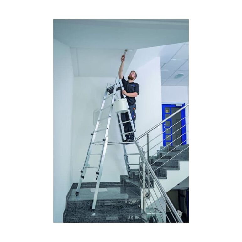 Günzburger Steigtechnik MUNK 33516 Aluminium Stufen-Doppelleiter inkl. 4 ausziehbaren Holmen Arbeit