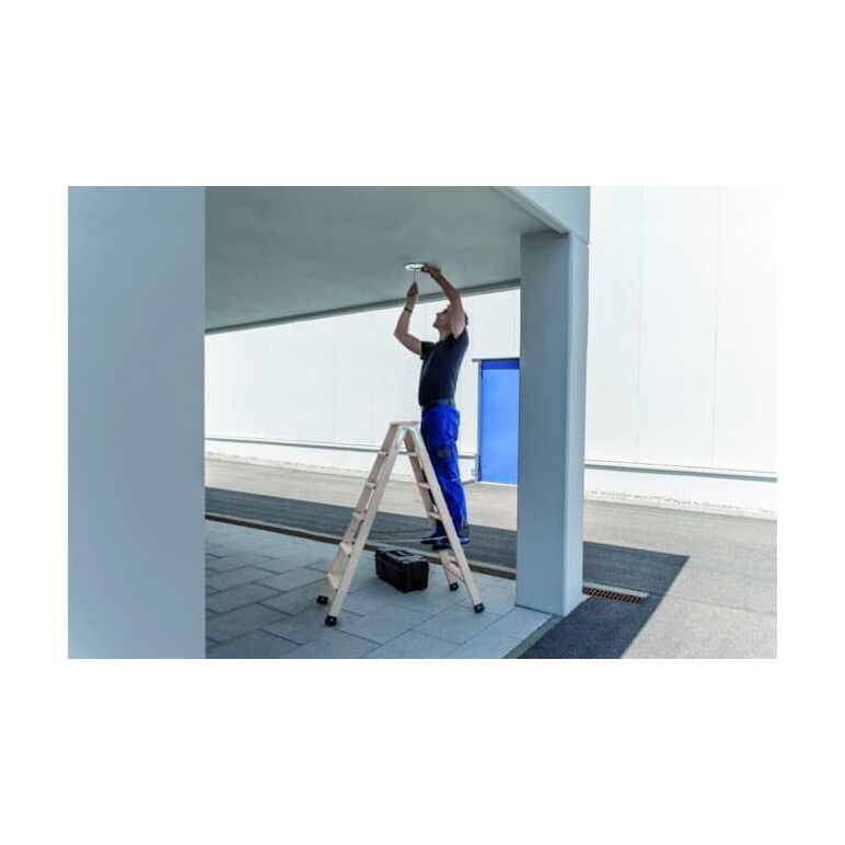 MUNK Günzburger Steigtechnik Stufen-Stehleiter beidseitig begehbar, Holz