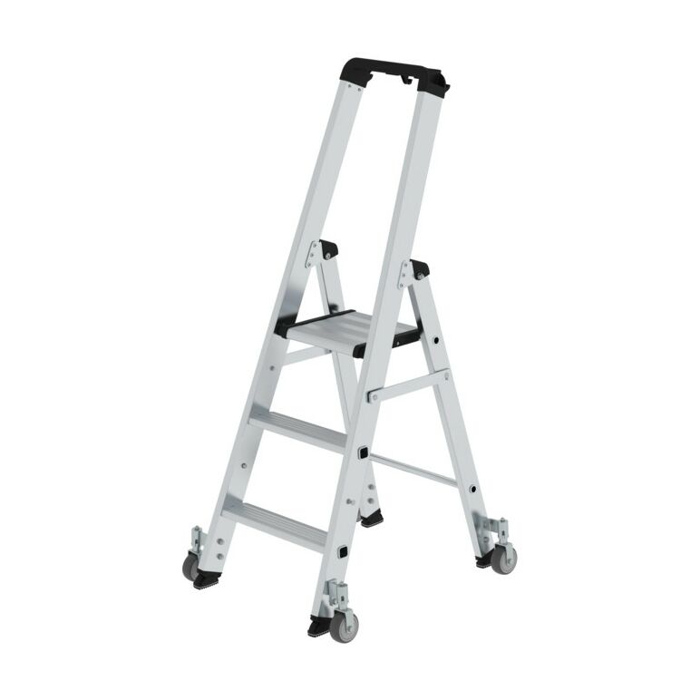 MUNK Günzburger Steigtechnik Aluminium-Stufenstehleiter einseitig begehbar mit Rollen