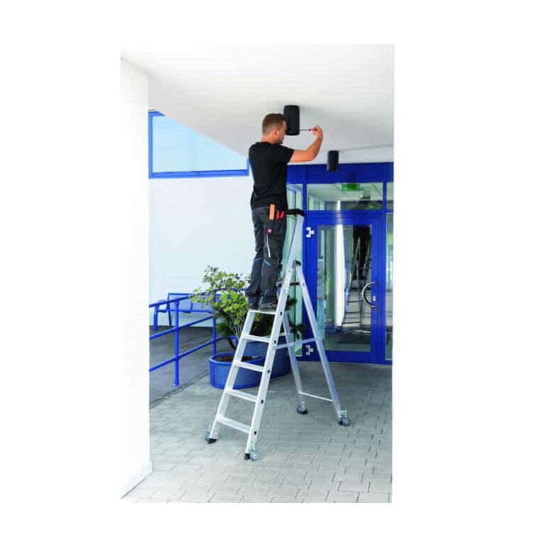 MUNK Günzburger Steigtechnik Aluminium-Stehleiter einseitig begehbar Rollen 1 x 4 Stufen