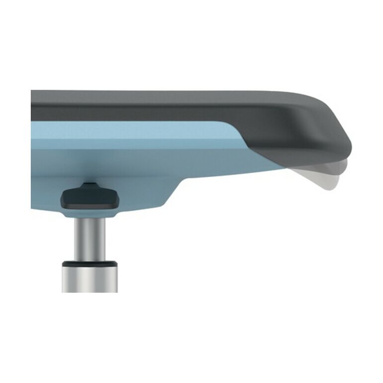 nach DIN 68877 · bedienungsfreundliche Gasfeder-Sitzhöhenverstellung · ergonomisch geformter Sitz und Rückenlehne mit robustem Integralschaumpolster beständig gegen leichte Säuren und Laugen, leicht abwaschbar · Rückenlehne mit 3D-Flexfunktion passt sich den Bewegungen des Nutzers an · Fünffuß-Untergestell aus Kunststoff, flach auslaufend, kipp- und stolpersicher · Untergestell mit abriebfesten Kunststoff-Bodengleitern und höhenverstellbarem Fußring für erhöhte Sitzposition