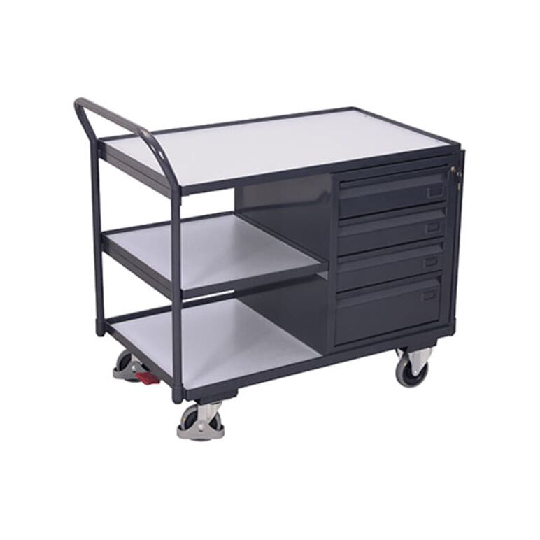- (B/T/H), mit 4 rollengelagerten Schubladen (3 x 95 und 1 x 155 mm hoch) verschließbar mittels Zentralschließung über Einzelauszugssperre