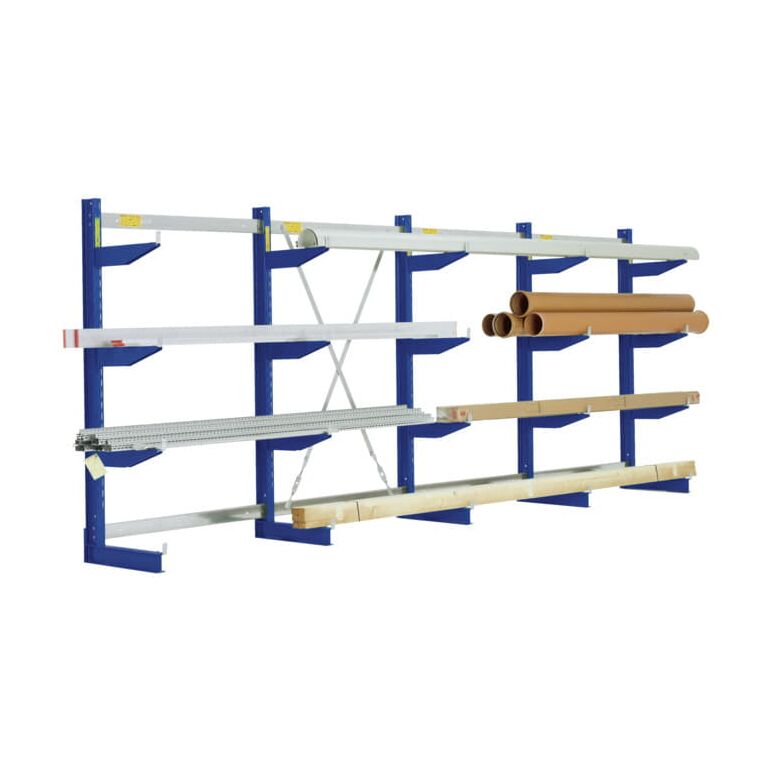 BITO 20-17900 Typ L Kragarmregale, Einseitige Nutzung, 5 Arme, 2480 mm x 5366 mm x 520 mm, 7920 kg Tragkraft Gesamt, 400 mm Nutztiefe, Enzianblau