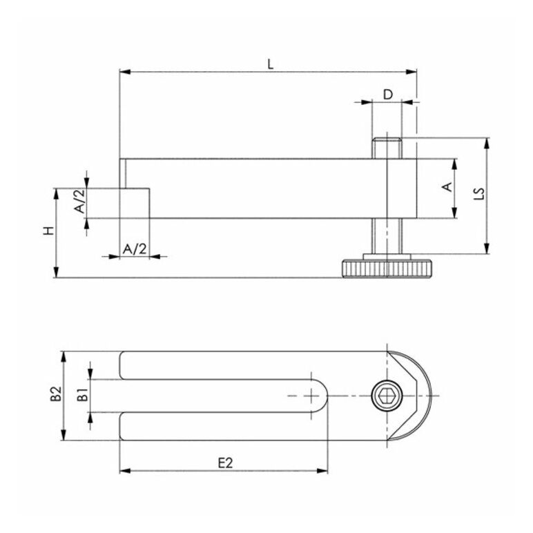 Maß H: Abhängig von Nutentiefe nach DIN 650 sowie Einschraublänge der Mutter. Die niedrigste Spannhöhe wird durch Umdrehen des Spanneisens erreicht.