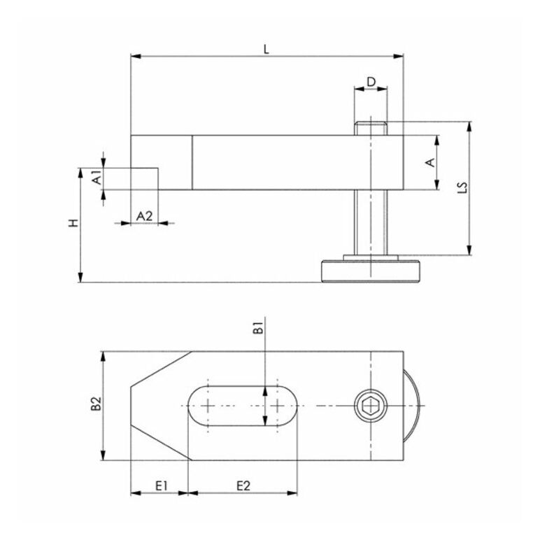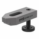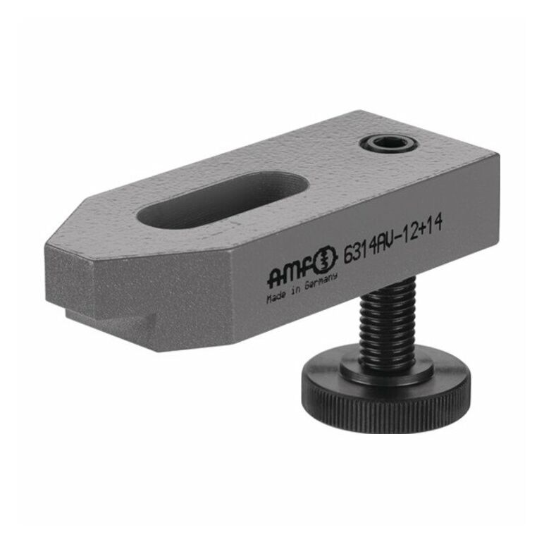 Maß H: Abhängig von Nutentiefe nach DIN 650, sowie Einschraublänge der Mutter. Die niedrigste Spannhöhe wird durch Umdrehen des Spanneisens erreicht. Spanneisen ohne Spannschraube sind in den Größen 12 und 14, 16 und 18 sowie 20 und 22 je eine Größe.