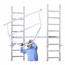 Fahrgerüst mit innovativem Aufbaukonzept · Gesicherter Stand in jeder Phase des Auf- und Abbaus · Geschweißte Rahmenteile sind robust und verbessern die Statik des Gerüstes, wodurch größere Aufbauhöhen erreichbar sind · Mit höhenverstellbaren, spindelbaren Lenkrollen, dadurch auch für unebene Flächen z. B. im Außenbereich geeignet · Zulässige Belastung: 200 kg/m² (2,0 kN/m²), gemäß Gerüstgruppe 3