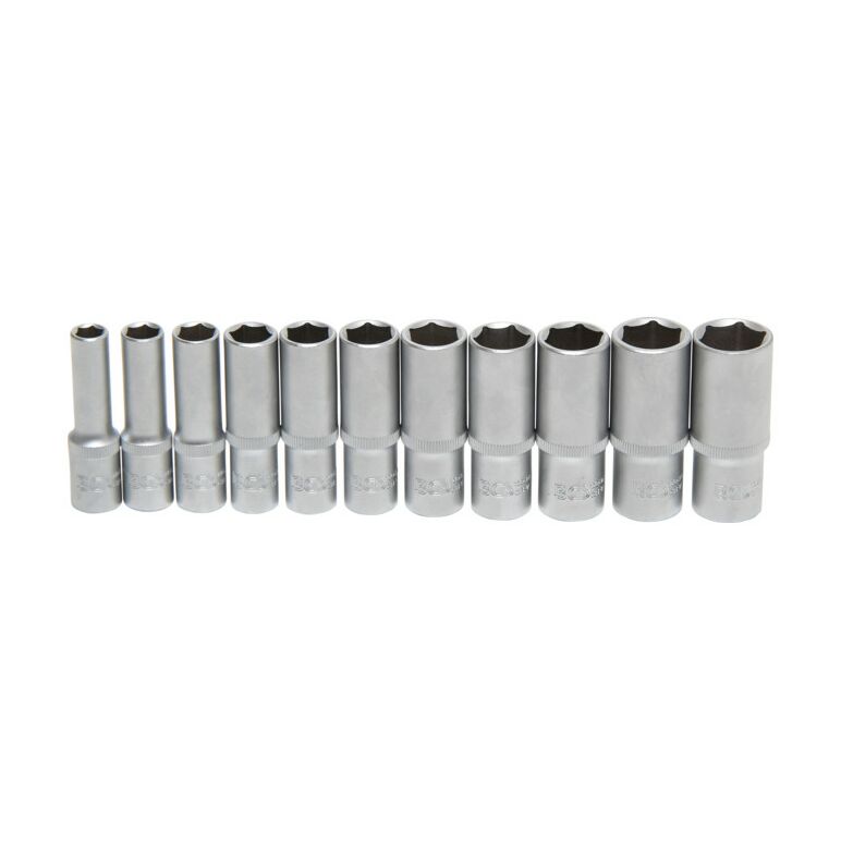 BGS Steckschlüssel-Einsatz-Satz Sechskant, tief Antrieb Innenvierkant 10 mm SW 8 - 19 mm 11-tlg.
