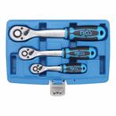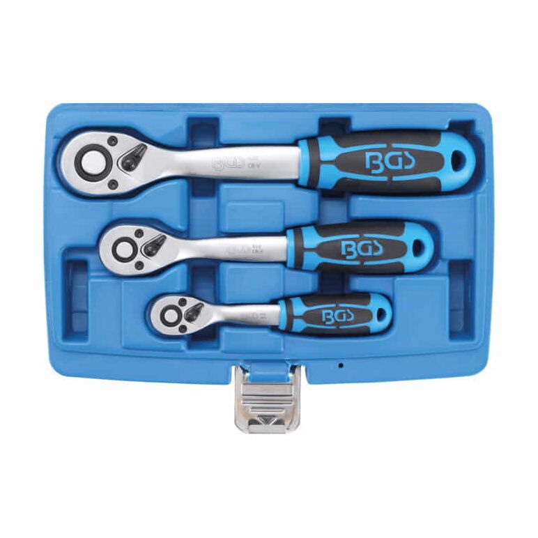 BGS Umschaltknarren-Satz feinverzahnt Abtrieb Außenvierkant 6,3 mm (1/4 Zoll) - 10 mm (3/8 Zoll) - 12,5 mm (1/2 Zoll) 3 teilig