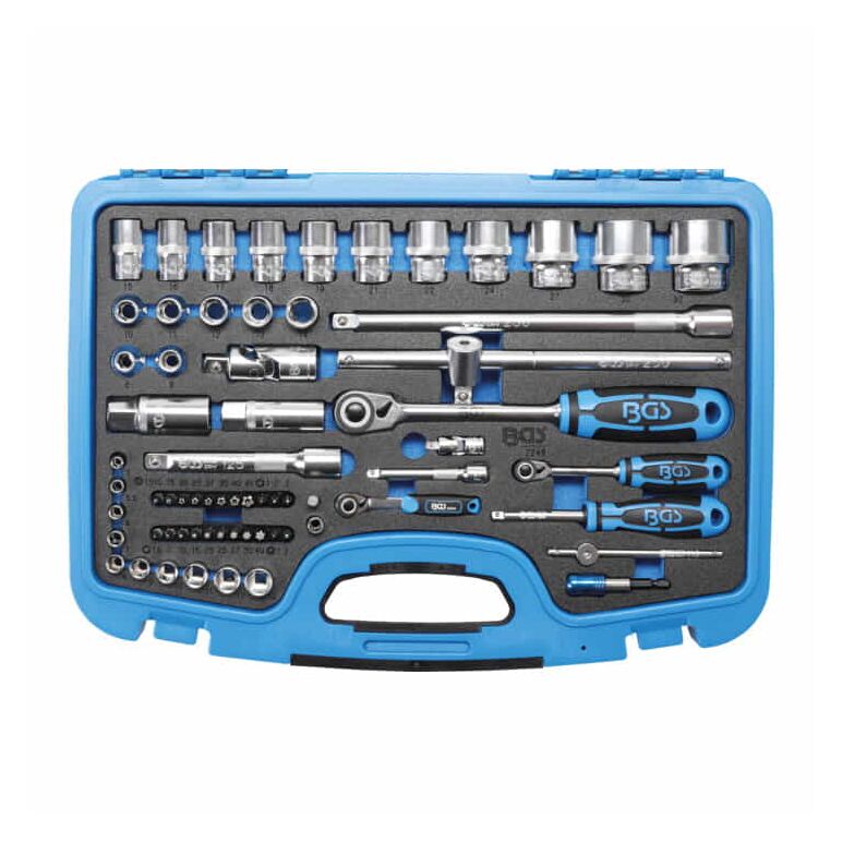 BGS Steckschlüssel-Satz Sechskant Antrieb 6,3 mm (1/4 Zoll) / 12,5 mm (1/2 Zoll) 66 teilig