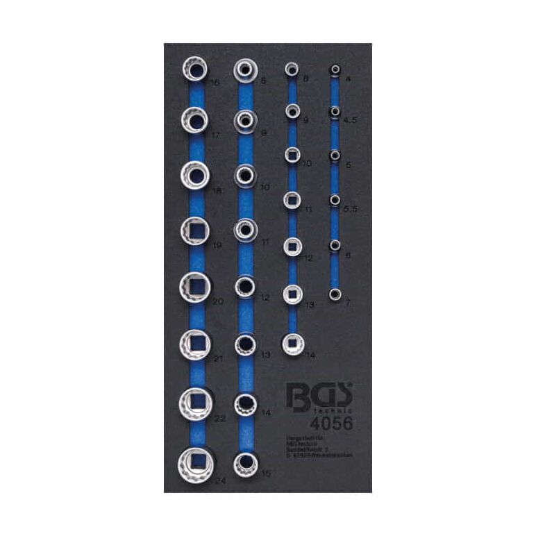 BGS Werkstattwageneinlage 1/3: Steckschlüssel-Einsätze Zwölfkant 6,3 mm (1/4 Zoll) und 12,5 mm (1/2 Zoll) 29 teilig