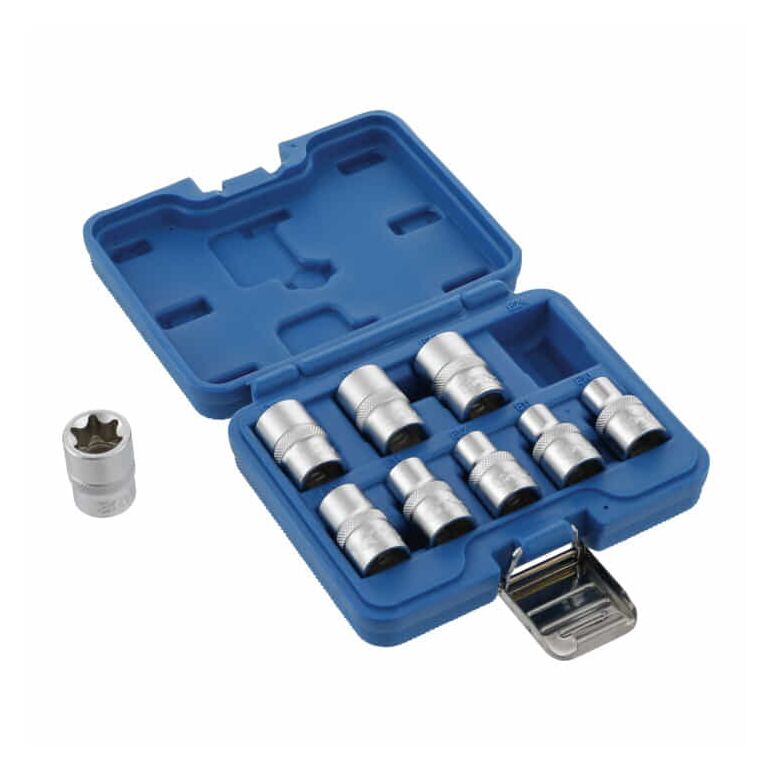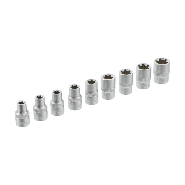 BGS Steckschlüssel-Einsatz-Satz E-Profil Antrieb Innenvierkant 12,5 mm SW E10 - E24 9-tlg.