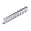 Steckschlüssel-Einsatz-Satz, Zwölfkant Antrieb Innenvierkant 10 mm (3/8') Zollgrößen 11-tlg.