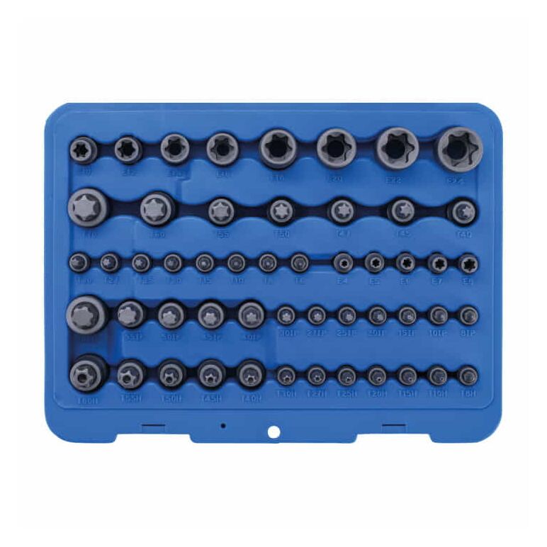 BGS Bit-Einsatz- und Steckschlüssel-Einsatz-Satz E-Profil / T-Profil (für Torx) / T-Profil (für Torx) mit Bohrung / TP-Profil (für Torx Plus) 52 teilig