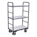 - Boden und Etagenböden aus 15 mm starker Dekorspanplatte, lichtgrau, elektrisch leitfähig
