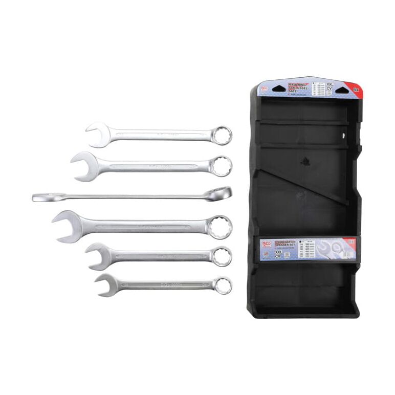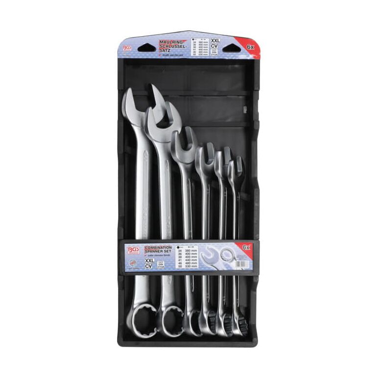 BGS 32400 | Maul-Ringschlüssel-Satz | 6-tlg. | extra lang | SW 34 - 50 mm | inkl. Kunststoff-Halter | Gabelringschlüssel