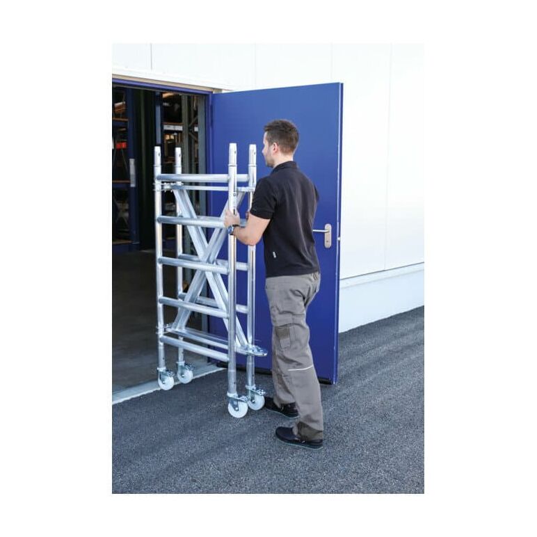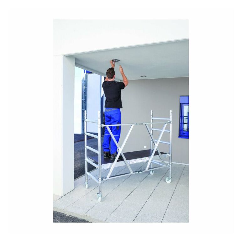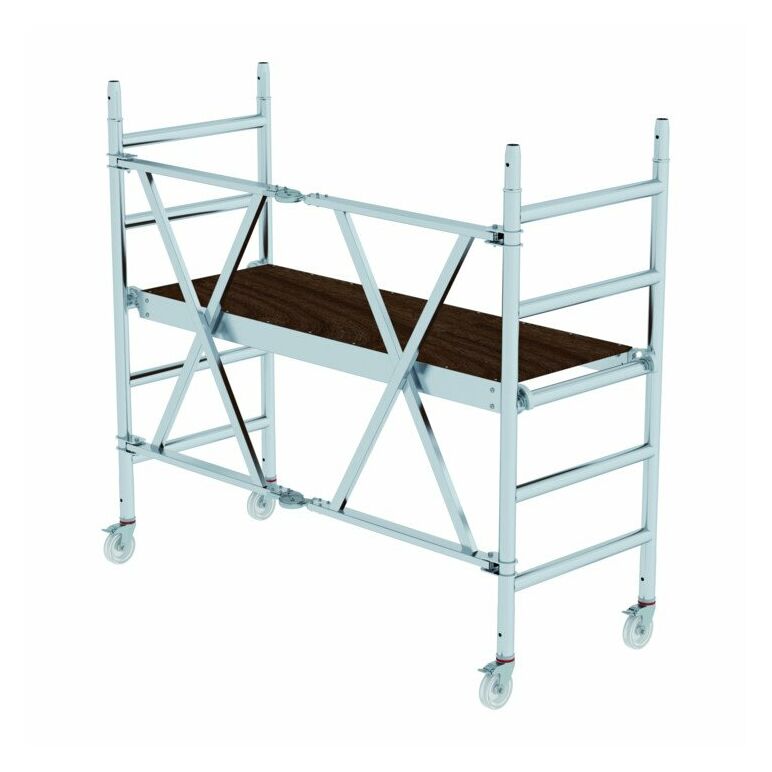 Aufgeklappt erhalten Sie eine Gerüstgröße von: 0,75 x 1,80 m bzw. 1,35 x 1,80 m, mit denen Arbeitshöhen bis zu 3,00 m zu erreichen sind