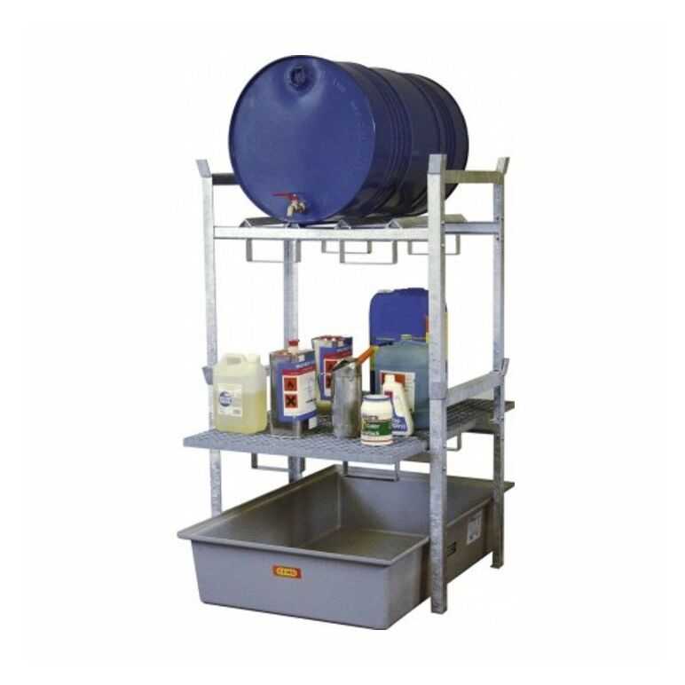 - Alle Fassregale sind komplett feuerverzinkt und besitzen eine absolut korrosionsfeste GFK-Auffangwanne für einen langfristigen, sicheren Einsatz