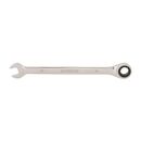 Metrischer Ring-Maul-Ratschenschlüssel aus vergütetem, hochglanzpoliertem Chrom-Vanadium-Stahl. Für Korrosionsbeständigkeit verchromt. Rasten in 5°-Intervallen. Macht auch schwer zugängliche Stellen leicht erreichbar.