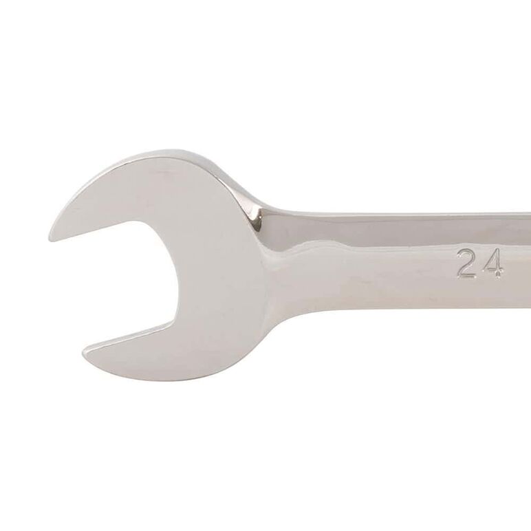 Metrischer Ring-Maul-Ratschenschlüssel aus vergütetem, hochglanzpoliertem Chrom-Vanadium-Stahl. Für Korrosionsbeständigkeit verchromt. Rasten in 5°-Intervallen. Macht auch schwer zugängliche Stellen leicht erreichbar.
