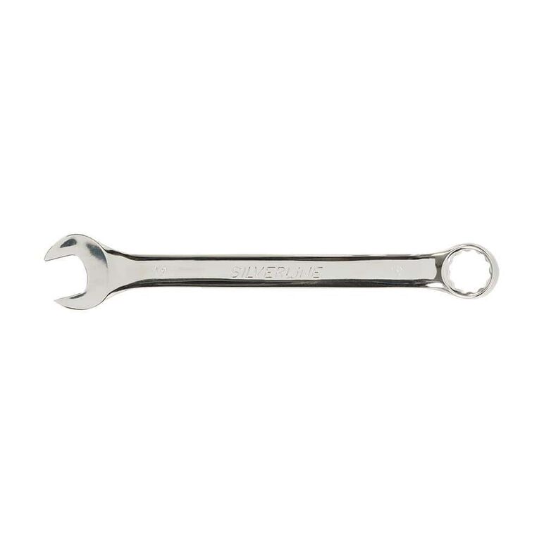 Hochglanzpolierter Ring-Maulschlüssel mit schmalem Profil. Gesenkgeschmiedeter, vergüteter Chrom-Vanadium-Stahl.