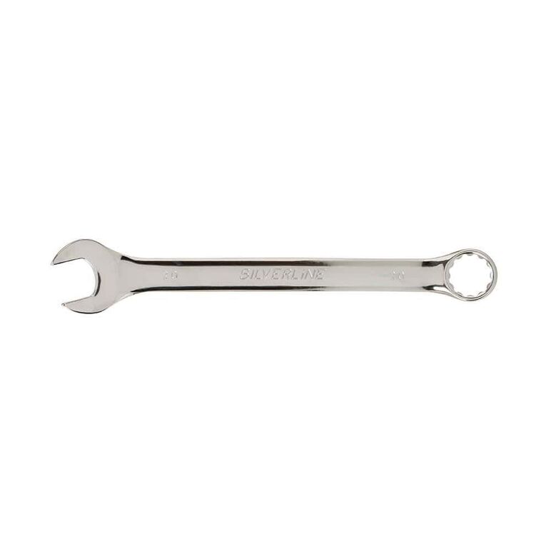 Hochglanzpolierter Ring-Maulschlüssel mit schmalem Profil. Gesenkgeschmiedeter, vergüteter Chrom-Vanadium-Stahl.