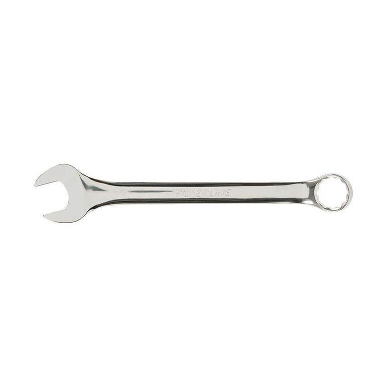 Hochglanzpolierter Ring-Maulschlüssel mit schmalem Profil. Gesenkgeschmiedeter, vergüteter Chrom-Vanadium-Stahl.